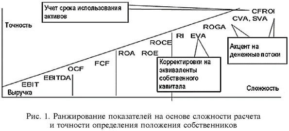 Летюхин И.Д. Российский рынок сотовой связи развивается нарастающими темпами, каждый год появляются новые идеи и услуги, внедряются все более современные технологии. Сегодня люди не могут представить свою жизнь без сотовой связи, она стала неотъемлемой частью повседневного социального взаимодействия между членами общества. С учетом высокой степени конкуренции на данном рынке и значительных масштабов компаний сотовой связи все большее значение имеет эффективность работы бизнеса. Оценка эффективности работы позволяет определить успешность компании и в каком направлении ей нужно поддерживать свое развитие. Данные показатели помогают скорректировать управленческую работу компании и важны для оценки инвестиционной привлекательности. Одной из главных задач менеджмента является повышение эффективности работы компании с целью увеличения доходности собственников и инвесторов. Следовательно, возникает прямая зависимость между эффективностью работы компании и инвестиционной привлекательностью. Актуальность темы обусловлена особой важностью повышения инвестиционной привлекательности компании, повышения эффективности ее работы, а значит, и ее конкурентоспособности. Цель исследования — проведение анализа инвестиционной привлекательности компаний сотовой связи на российском рынке телекоммуникационных услуг и определение эффективности работы данных компаний. Анализ инвестиционной привлекательности компанийИнвестиционная привлекательность. Практически каждый экономический рынок можно охарактеризовать наличием высокого уровня конкуренции. Для того чтобы сохранить свою существующую позицию на рынке, а также достичь новых вершин лидерства, предприятию необходимо постоянно развиваться, осваивать новые технологии, расширять сферу своей деятельности. Практически у каждой компании наступает момент, когда для дальнейшего развития необходим приток инвестиций. Привлечение инвестиций способствует развитию конкурентоспособности предприятия и зачастую его экономическому росту, что приводит к повышению эффективности работы бизнеса. Инвестиционная привлекательность предприятия — совокупность экономических характеристик, демонстрирующих эффективность работы организации и способность приносить инвесторам стабильную выгоду. Правильный подход к инвестиционной политике позволяет предприятию привлекать необходимые средства для развития бизнеса. Инвестиционная привлекательность определяется на основе величины уровня дохода, который может получить инвестор, и минимизации рисков при вложении средств. В зависимости от особенностей предприятия принято выделять различные показатели при оценке инвестиционной привлекательности компании. В работе Т.В. Тепловой «Отраслевые особенности выбора показателей для оценки эффективности деятельности в целом и вклада финансовых решений» приводится ранжирование показателей, исходя из сложности расчета и точности определения положения собственников (рис. 1). Данные показатели основаны на различных особенностях деятельности предприятия и помогают оценить его эффективность как в общем, так и исходя из определенных направлений. Все представленные на рисунке показатели позволяют оценить различные аспекты функционирования предприятия, использование каждого и