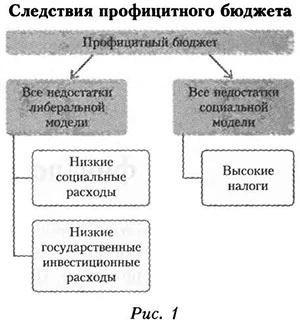 Таким образом, выбирая между либеральной и социальной моделями, в реальности пришли к некоей третьей: финансового «пылесоса», откачивающего ресурсы из экономики страны через профицит бюджета. Назовем негативные следствия хронического профицита бюджета (подробнее см.: Дмитриева, 2013а):