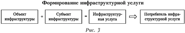 Инвестиции в инфраструктуру стабилизируют экономику, поддерживают спрос и занятость, выступают важнейшим инструментом создания условий для экономического развития. По результатам исследований, 1 доллар, вложенный в инфраструктуру, добавляет 1,59 доллара в ВВП9. Кроме того, бизнес в целом выигрывает из-за сокращения издержек — транспортных, коммуникационных, энерго- и водоснабжения. Данный вопрос особенно актуален для России, где в настоящее время недостаточное развитие инфраструктуры сдерживает предпринимательскую активность, инвестиции в модернизацию экономики. Отставание России от развитых стран по плотности автомобильных и железных дорог, состоянию инженерной и коммунальной инфраструктуры измеряется десятилетиями. Это обусловлено как большой неравномерностью территориального развития, так и дефицитом инвестиций, особенно в последние 20 лет. Нехватка инфраструктурных объектов вызвана двумя причинами. Во-первых, в последние годы происходило выбытие ряда объектов. Во-вторых, увеличились объемы потребления инфраструктурных услуг из-за вовлечения России в мировые интеграционные процессы. Выросли объемы внешнеэкономических и внутренних операций на товарных рынках, грузо- и пассажиропотоки, количество хозяйствующих субъектов, повысились требования к качеству их функционирования и т. д. Созданная в XX в. инфраструктура не справляется с возникшим дефицитом. Не менее важный элемент инфраструктурного регулирования — создание понятных «правил игры» на рынке инфраструктурных услуг. Большинство объектов инфраструктуры относятся к госсобственности или собственности естественных монополий, фактическое отсутствие конкуренции ограничивает возможности рыночного регулирования отношений в этой сфере. Необходимо более четко регламентировать порядок предоставления и оплаты инфраструктурных услуг. Взаимодействие потребителей с объектами инфраструктуры (сети, транспортные объекты, объекты энергетики и т. д.) осуществляется через инфраструктурную услугу, которая может быть бесплатной (например, проезд по автодороге), но чаще оплачивается. Субъект инфраструктуры — организация, эксплуатирующая объект инфраструктуры и взимающая плату за инфраструктурную услугу (см. рис. 3).