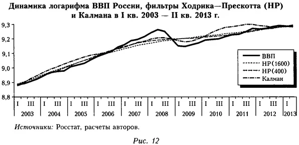 Минфин России (2012). Основные направления государственной долговой политики Российской Федерации на 2013—2015 гг. Москва. [The Ministry of Finance of the Russian Federation (2012). Main Variants of the Sovereign Debt.Policy of the Russian Federation for 2013—2015. Moscow.] Минэкономразвития России (2013). Прогноз социально-экономического развития Российской Федерации на 2014 год и на плановый период 2015 и 2016 годов. Москва, сентябрь. [The Ministry of Economic Development of the Russian Federation (2013). The Forecast of Social and Economic Development of the Russian Federation for 2014 and the Planning Period 2015—2016. Moscow.] Миронов В. (2009). Воздействие экономического кризиса на реальный сектор экономики России // Журнал Новой экономической ассоциации. № 3 — 4. С. 214—223. [Mironov V. (2009). Influence of the World Economic Crisis on the Real Sector of the Russian Economy // Journal of the New Economic Association. No 3-4. P. 214-223.] Центр развития (2009). Сценарный прогноз мирового цикла и оценка последствий мировой рецессии для российской экономики в среднесрочной перспективе. Отчет о НИР по госконтракту №. 0101-03-09 от 07.09.2009 г. для Минэкономразвития России (итоговый отчет). Москва. [Center of Development (2009). Scenario Forecast of the Global Cycle and the Effect of the Global Recession on the Russian Economy in the Medium Term. Research report on the state contract No 0101-03-09, 07.09.09 for the Ministry of Economic Development of the Russian Federation (The Final Report). Moscow.] Borio C., Disyatat P., Juselius M. (2013). Rethinking Potential Output: Embedding Information about the Financial Cycle // BIS Working Papers. No 404. Bussiere M., Imbs JKollmann R. (2013). The Financial Crisis: Lessons for International Macroeconomics // American Economic Journal: Macroeconomics. Vol. 5, No 3. P. 75-84. Claessens S., Kose A. M., Terrones M. E. (2011). How Do Business and Financial Cycles Interact? // IMF Working Paper. No 11/88. DelVAriccia G., Igan D., Laeven L., Tong H. (with Bakker В., Vandenbussche J.) (2012). Policies for Macrofinancial Stability: How to Deal with Credit Booms // IMF Staff Discussion Note. No SDN/12/06. Drehmann M., Borio C., Tsatsaronis K. (2012). Characterising the Financial Cycle: Don't Lose Sight of the Medium-term! // BIS Working Papers. No 380. Fagerberg J. (1988). International Competitiveness // The Economic Journal. Vol. 98, June. P. 355-374. Felipe J., Kumar U. (2011). Unit Labor Costs in the Eurozone: The Competitiveness Debate Again // Asian Development Bank Working Paper. No 651. Manila, Philippines. Gianella C., Chanteloup C. (2006). How Is Russian Trade Affected by Exchange Rate Developments? // OECD Working Paper. Greenspan A. (2011). Europe's Crisis Is All about the North-South Split // The Financial Times. October 6, IMF (2012). World Economic Outlook. Coping with High Debt and Sluggish Growth. Washington. October. Kocherlakova N. (2010). Modern Macroeconomic Models as Tools for Economic Policy / The Federal Reserve Bank of Minneapolis. May. Komuki T. (2008). Estimating Potential Output and the Output Gap in Slovakia // IMF Working Paper. No WP/08/274. Kose A. M., Otrok C., Prasad E. S. (2012). Global Business Cycles: Convergence or Decoupling? // International Economic Review. Vol. 53. P. 511 — 538. Lo A. W. (2012). Reading about the Financial Crisis: A Twenty-One-Book Review // Journal of Economic Literature. Vol. 50, No 1. P. 151 — 178. Mankiw G. N. (1985). Small Menu Costs and Large Business Cycles: A Macroeconomic Model of Monopoly // Quarterly Journal of Economics. Vol. 100, No 2. P. 529-539. Matheson Т. (2013). The Global Financial Crisis: An Anatomy of Global Growth // IMF Working Paper. No WP/13/76. May. McElhattan R. (1978). Estimating a Stable Inflation Rate of Capacity Utilization // Federal Reserve Bank of San Francisco Economic Review. Fall. P. 20 — 30. Metzler L. A. (1941). The Nature and Stability of Inventory Cycles // Review of Economics and Statistics. Vol. 23, No 3. P. 113 — 129. OECD (2010). Counter-Cyclical Economic Policy // OECD Economic Outlook Preliminary Edition. May. Ch. 6. Oomes N.f Dynnikova O. (2006). The Utilization-Adjusted Output Gap: Is the Russian Economy Overheating? // IMF Working Paper. No 06/68. Thirlwall A. P. (1979). The Balance of Payments Constraint as an Explanation of International Growth Rate Differences // Banca Nazionale del Lavoro Quarterly Review. Vol. 32, No 128. P. 45-53.