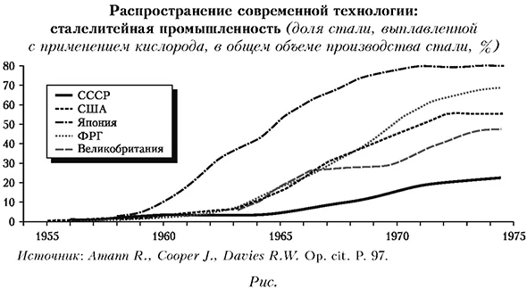 * 50 или более ед. в год; ** оценки. Источник: Amann R., Cooper J., Davies R.W. Op. cit. P. 41. Таблица 4 Распространение новой технологии: сталелитейная промышленность, непрерывное литье (в %)