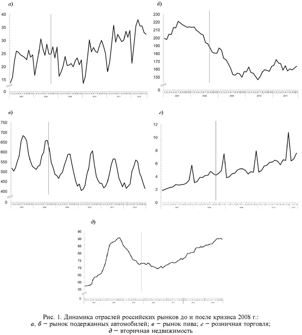 Итак, для изучения мы взяли четыре российских рынка, на которых воздействовал экономический кризис 2008 г.:
