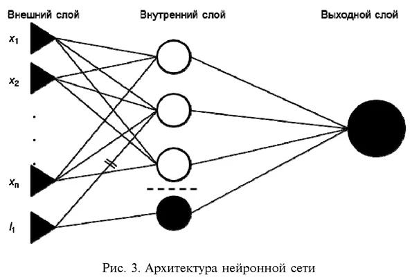 Модель для описания поведения рынков при отсутствии кризисаПредлагаемая модель [9, 10] позволяет рассмотреть гипотетическую ситуацию, в которой исключено влияние кризиса. Таким образом, можно воспроизвести сценарный анализ «что если» и оценить, как развивалась бы ситуация, если бы кризиса не было. Для этого на данных строятся нейронные сети нестандартной архитектуры [11, 12]. Основная особенность заключается в модификации архитектуры сети таким образом, чтобы из нее можно было извлечь информацию о влиянии произошедших событий для количественной оценки эффекта ВВС [13]. Несмотря на то, что в рассматриваемых примерах оценивается влияние экономического кризиса, метод может применяться при оценке влияния любого ВС и пригоден для анализа любых управленческих решений [14]. Предлагаются следующие изменения архитектуры нейронной сети. На вход нейронной сети дополнительно подается к значений, где к — число событий, эффект которых желательно измерить. Входные значения этих переменных формируются специально, алгоритм определения этих входных значений опишем далее. Затем будут различаться входные переменные и переменные, описывающие ВВС. К нейронам внутреннего слоя добавляются нейроны, которые будут называться нейронами, отвечающими за ВВС. Из сети исключаются взаимодействия между внешними переменными и нейронами внутреннего слоя, отвечающими за ВВС, а также взаимодействия между переменными, описывающими ВВС, и остальными нейронами на внутреннем слое. Как и у стандартной нейронной сети, для нейронов на внутреннем слое используется логистическая функция активации. На выходном слое функция активации — линейная. В итоге получается достаточно необычная топология нейронной сети, которая представлена на рис. 3. Следует обратить внимание на то, что перечеркнутые связи на рисунке — это связи, которые присутствуют в классической нейронной сети, но отсутствуют в предлагаемой архитектуре. При этом x1, x2, ..., xn — входные переменные, I1 — переменная, описывающая ВВС. ![]() Результаты построения нейронных сетей для каждого из рынков сравниваются со стандартными моделями ARIMA [15, 16] по критерию качества RMSE. В табл. 1 представлены итоги построения моделей для всех рынков. Можно отметить, что критерий RMSE для нейронных сетей в несколько раз меньше, чем для моделей ARIMA. Например, для случая рынка розничной торговли RMSE нейронных сетей в 13 раз меньше, а для рынка пива — в 3 раза. Таблица 1 Сравнение результатов RMSE для моделей нейронных сетей и моделей ARIMA