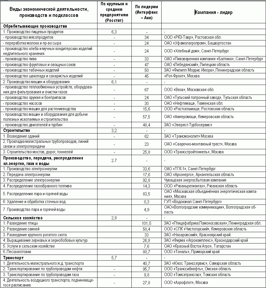Как видим, рентабельность предприятий-лидеров в несколько, а иногда в десятки раз превышает среднестатистические результаты: