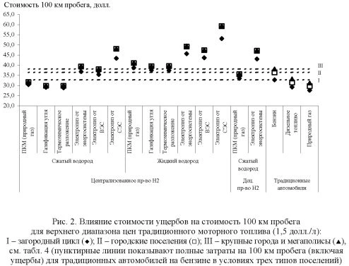 Оценка влияния ущербов от загрязнения окружающей среды на конкурентоспособность водорода как моторного топлива |