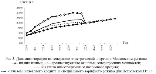 Таким образом, указанные предложения могут быть реализованы на уровне регионов, без изменения федерального законодательства. Прямые государственные инвестиции в строительство Петровской ГРЭС. Строительство Петровской ГРЭС является самым крупным проектом инвестиционной программы ОАО «Мосэнерго». В рамках исследования рассмотрен сценарий ввода двух очередей Петровской ГРЭС на базе ПГУ-800. В отличие от остальных проектов, нацеленных на использование существующей инфраструктуры ТЭЦ ОАО «Мосэнерго», строительство Петровской ГРЭС будет осуществляться с «нулевой отметки». В этой связи показатель удельных капитальных затрат на 1 МВт мощности для Петровской ГРЭС более чем в 2 раза превышает данные показатели для ПГУ - энергоблоков на территории ТЭЦ Москвы. В настоящее время для Петровской ГРЭС не определен топливный режим. В случае принятия угольного варианта капитальные и эксплуатационные затраты значительно возрастут. Выполненные расчеты показывают, что для достижения по первой и второй очередям Петровской ГРЭС целевой доходности в 13,6% за 15 лет, тарифы на электроэнергию для данной ТЭС должны превышать индикативные уровни в 2,13 раза (рис. 3). ![]() Сценарий динамики тарифов, рассмотренный в данном исследовании, не учитывает ввода третьей и четвертой очереди после 2015 г., безусловно, данный фактор окажет существенное влияние на динамику цены электроэнергии. В целях обеспечения приемлемого роста тарифов на электроэнергию в регионе необходимы прямые государственные инвестиции в строительство Петровской ГРЭС. Для минимизации тарифной нагрузки на потребителей региона предлагается установить для Петровской ГРЭС тарифы на электроэнергию, обеспечивающие рентабельность затрат 3%, что соответствует рентабельности затрат ОАО «Мосэнерго», принятой в тарифно-балансовом решении ФСТ на 2007 г. Выполненные авторами расчеты показывают, что с учетом нормы дисконта для бюджетных инвестиций на уровне доходности Стабилизационного фонда РФ (4%) и налоговых поступлений от эксплуатации объекта дисконтированный срок окупаемости проекта по вводу первой и второй очереди составит 17 лет с начала строительства. Рассмотренные меры позволят уменьшить разрыв между средними тарифами на генерацию электрической энергии и индикативными значениями (табл. 10). Таблица 10 Отклонения среднеотпускных тарифов на генерацию электроэнергии в Московском регионе от индикативных значений, %
