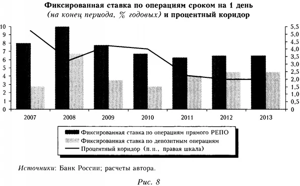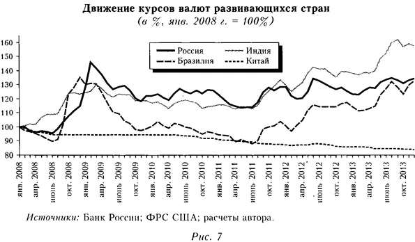 Заявив еще в 2007 г. о переходе к плавающему валютному курсу в качестве одной из ключевых задач, Банк России последовательно приближается к поставленной цели. При кардинальном изменении механизма курсообразования существенно возросла роль рыночных факторов в формировании курсовой динамики. Заметное сокращение объемов валютных интервенций Банка России оказало комплексное воздействие на структуру как платежного баланса РФ, так и денежного предложения, что позволяет шире использовать процентные механизмы курсовой политики. Вместе с тем вследствие повышения роли рыночных факторов в процессе курсообразования при ослаблении регулирующего воздействия Банка России повысилась волатильность обменного курса российского рубля до уровня ключевой валютной пары евро/доллар. Существенный рост валютных рисков стал новой реальностью для хозяйствующих субъектов российской экономики. 1 Под валютным риском понимается риск возникновения у кредитной организации финансовых потерь (убытков) по открытым позициям в иностранных валютах и драгоценных металлах (Банк России, www.cbr.ru). 2 http:/ expert.ru 2013/07 9/rezerv-trebuet-cleneg. 3 http!/ /expert.ru 2013, 07/18/minfin-zakupaet-valyutu. 4 В рамках эффекта Балассы — Самуэльсона в развитых странах, использующих режим свободно плавающего валютного курса и активно вовлеченных в мирохозяйственные процессы, укрепление национальной валюты обусловлено ростом производительности труда в торгуемом секторе экономики. В связи с этим чем ближе к мировым лидерам находится страна, тем «дороже» ее валюта (Гурвич и др., 2008). 5 The People's Bank of China Announcement, www.pbc.gov.cn/ publish english 7955 2012 20120414090756030448561 201204l4090756030448561_.html. Список литературы Банк России (2004). Основные направления единой государственной денежно-кредитной политики на 2005 год. Москва. IBank of Russia (2004). Guidelines for the Single State Monetary Policy for 2005. Moscow.] Банк России (2005). Основные направления единой государственной денежно-кредитной политики на 2006 год. Москва. [Bank of Russia (2005). Guidelines for the Single State Monetary Policy for 2006. Moscow.] Банк России (2006). Основные направления единой государственной денежно-кредитной политики на 2007 год. Москва. [Bank of Russia (2006). Guidelines for the Single State Monetary Policy for 2007. Moscow.] Банк России (2008). Основные направления единой государственной денежно-кредитной политики на 2009 год и период 2010 и 2011 годов. Москва. [Bank of Russia (2008). Guidelines for the Single State Monetary Policy for 2009 and the Period of 2010 and 2011. Moscow.] Банк России (2009). Основные направления единой государственной денежно-кредитной политики на 2010 год и период 2011 и 2012 годов. Москва. [Bank of Russia (2009). Guidelines for the Single State Monetary Policy for 2010 and the Period of 2011 and 2012. Moscow.] Банк России (2013a). Политика валютного курса Банка России. Москва. 1.10. [Bank of Russia (2013а). Exchange Rate Policy of the Bank of Russia. Moscow. 1.10.] Банк России (2013b). О курсовой политике Банка России. Москва. 21 октября. [Bank of Russia (2013b). On the Exchange Rate Policy of the Bank of Russia. Moscow. October 21.] Борисова ИЗамараев Б., Киюцевская А., Назарова А., Суханов Е. (2012). Растущая российская экономика на фоне растущей внешней напряженности // Вопросы экономики. N° 6. С. 4 — 32. [Borisova I., Zamaraev В., Kiyutsevskaya А., Nazarova A., Sukhanov Е. (2012). Growing Russian Economy against Growing External Tension // Voprosy Ekonomiki. No 6. P. 4 — 32.] Гурвич EСоколов В., Улюкаев A. (2008). Оценка вклада эффекта Балассы — Самуэльсона в динамику реального обменного курса рубля // Вопросы экономики. N° 7. С. 12-30. [Gurvich Е., Sokolov V., Ulyukaev А. (2008). The Impact of the Balassa—Samuelson Effect on the Real Ruble Exchange Rate: The Assessment // Voprosy Ekonomiki. No 7. P. 12 — 30.] Улюкаев A. B. (2006). У меня нет сомнений в реа