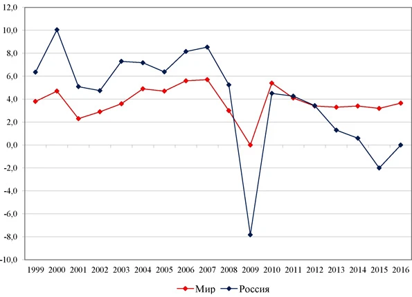 Экономика и внешняя политика ИМЭМО РАН Факторы риска: санкции и «нефтегазовый шок»В 2015 г. динамика российской экономики находилась под влиянием двух факторов, негативное влияние которых постепенно набирало силу. С одной стороны, под действием нарастающего санкционного давления радикально ухудшились условия экономического взаимодействия России с ведущими партнерами по торговому и инвестиционно-технологическому сотрудничеству. С другой стороны, устойчивое снижение мировых цен на сырьевые товары, в первую очередь энергоносители, привело к значительному сокращению экспортных доходов и бюджетных поступлений. Прямой и косвенный (через резкое снижение курса рубля к ведущим мировым валютам) эффект соответствующих факторов оказался настолько глубоким, что заставил всерьез говорить об угрозах ослабления как краткосрочных, так и среднесрочных перспектив развития страны. Негативное влияние экономических санкций в наибольшей степени сказалось на возможностях привлечения внешних ресурсов для финансирования развития российской экономики. Если в 2013 г. объем новых внешних обязательств по финансовому счету платежного баланса составил 16,6 млрд. долл., то в 2014 г. накопленные внешние обязательства сократились на 48,9 млрд. долл., а в 2015 г. сопоставимое сокращение обязательств (на 46,8 млрд. долл.) было зафиксировано на протяжении одного только первого полугодия. Таким образом, в 2014-2015 гг. российская экономика не только не получала дополнительных внешних инвестиционных ресурсов, но и ускоряющимися темпами теряла то, что было инвестировано в нее из-за рубежа ранее. Приток прямых иностранных инвестиций, особенно важных для экономического развития с учетом их долгосрочного характера и тесной связи с трансфертом передовых зарубежных технологий, в первом полугодии 2015 г. сократился более чем в 5 раз по сравнению с аналогичным периодом предыдущего года и почти в 11 раз - по сравнению с январем-июнем 2013 г. Показательно, что падение инвестиционной привлекательности страны происходило на фоне устойчивого улучшения ее позиций в международном рейтинге Doing Business. В 2015 г. Россия поднялась на 51-ю позицию данного рейтинга, опередив не только все страны БРИКС, но и Израиль (53), Турцию (55) и Люксембург (61). В то же время по масштабу притока прямых иностранных инвестиций Россия далеко отстает от соответствующих экономик. Так, Бразилия (116-я позиция в рейтинге Doing Business) в первом полугодии 2015 г. привлекла прямых иностранных инвестиций почти на 31 млрд. долл. по сравнению с 4,3 млрд. долл. у России. Данный факт неизбежно дает повод для серьезных размышлений о том, что меры по улучшению инвестиционного климата в стране должны носить комплексный характер с учетом как экономических и административных, так и внешнеполитических факторов, определяющих решения инвесторов. Хотя наибольший ущерб был нанесен санкциями, введенными против российского финансового сектора (которые фактически лишили российские банки доступа к финансовым рынкам США и ЕС) и отраслей нефтегазового комплекса (где за немногими исключениями были свернуты проекты инвестиционно-технологического сотрудничества с ведущими зарубежными компаниями), системный эффект санкционного давления оказался существенно шире. С одной стороны, обусловленное санкциями сокращение доступности финансовых ресурсов 