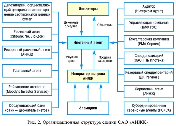 На рис. 2 представлена организационная структура сделки. В целом параметры сделки соответствуют характеристикам американской системы секъюритизации ипотечных кредитов. Это двухуровневая сделка с обеспечением от АИЖК, которое принадлежит государству в лице Федерального агентства по управлению федеральным имуществом. Также стоит отметить, что присутствуют отдельные элементы европейской схемы. Например, наличие депозитария, а также объем сделки, характерный больше для европейских стран. ![]() В табл. 2 представлены результаты оценки сделки в ЗАО «Ипотечный агент АИЖК 2013-1». Таблица 2Оценка сделки в ЗАО «Ипотечный агент АИЖК 2013-1»