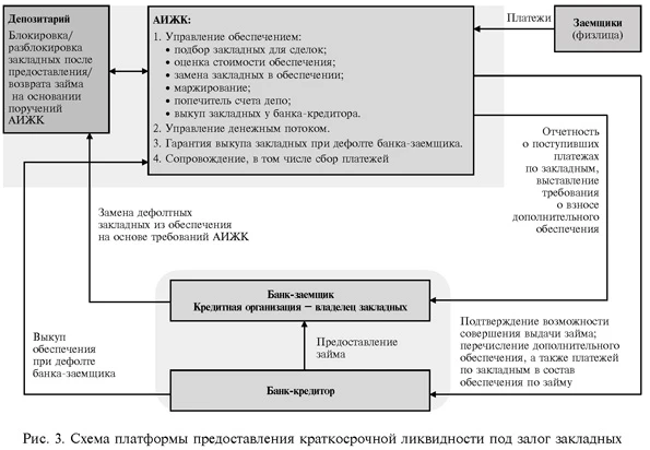 Эти инструменты предназначены, в первую очередь, для менее крупных универсальных и ипотечных банков, не входящих в двадцатку крупнейших. В отличие от крупнейших участников рынка банки из этой категории, как правило, не имеют возможности получить дополнительные средства на международных рынках капитала, но нуждаются в привлечении ликвидности для выдачи новых кредитов. В 2013 г. АИЖК запустило проект, по итогам которого агентство планирует предоставить банкам возможность получать промежуточное финансирование (рис. 3). ![]() Финансирование будет осуществляться в форме кредита под залог пула закладных сроком от полугода до одного года, а объемы кредита будут ограничены интервалом 0,5-3 млрд р. Одной из основных задач АИЖК как участника инфраструктуры на данной платформе является снижение риска сделки кредитования под залог ипотечных закладных, а значит, и ставки для банка-заемщика. Кредиторами на этом рынке смогут выступать крупные российские и иностранные банки, инвестиционные компании. Данная площадка способна предоставлять любой кредитной организации возможность открыть новое направление низкорискованного бизнеса по кредитованию других участников ипотечного рынка. Кроме того, платформа повысит устойчивость мелких и средних банков, имеющих на балансе ипотеку, за счет диверсификации источников фондирования. Продукт будет интересен тем банкам, которые еще не готовы к сделке секъюритизации, когда у них еще нет подписанных договоров, нет специального ипотечного агента, но есть значительный пул кредитов, которые нужно рефинансировать. Для небольших банков, которые хотели бы провести сделку секъюритизации, но не могут накопить на балансе минимально необходимый объем ипотечного портфеля (около 3 млрд руб. за год), АИЖК предоставляет мультиоригинаторную платформу в рамках сделок секъюритизации (рис. 4).