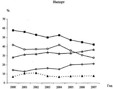 Источник. Внешняя торговля Украины товарами и услугами. Т. 1. 2005-2008 гг. Сотрудничество между Украиной и странами ЕС. Стат. сборник за 2005-2008 гг. и расчеты автора. ![]()
