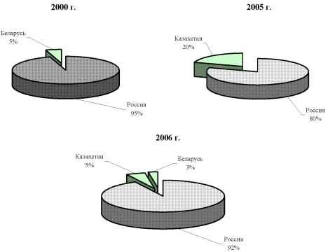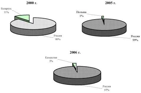 Источник. Научная и инновационная деятельность в Украине. Стат. сб. Госкомстата Украины за соответствующие годы. Исследования интеграционный процессов показывают, что среди зарубежных стран - партнеров России с большим отрывом лидирует Украина. По мнению российских экспертов, на всем постсоветском пространстве Украина -наиболее близкая России страна с точки зрения рыночных процессов в экономике и менталитета ведения бизнеса: «... Постсоветское пространство является особым регионом с точки зрения политических и экономических интересов России. Во-первых, это пояс наших ближайших соседей, с которыми в исторически недавнем прошлом существовали тесные связи в составе единого народнохозяйственного комплекса СССР. Во-вторых, это страны, большинство из которых осуществляет похожие с российскими трансформационные преобразования своей экономики. В-третьих, это регион, где Россия стремится реализовать свои интеграционные инициативы на межгосударственном уровне. Этот регион стал полигоном для отработки некоторых форм и методов инвестиционной экспансии» [2]. Данную точку зрения подтверждает опрос более 80 экспертов (генеральных директоров и топ-менеджеров ведущих российских компаний), который показал, что такого рода экспансия приносит выгоду самим компаниям, а в качестве ключевых факторов названы: доступ к новым рынкам сбыта; проникновение на территорию региональных интеграционньгх объединений и преодоление тем самым тарифных и нетарифных ограничений для торговли; доступ к ресурсам за границей; расширение ассортимента производства, получение современных технологий и передового опыта; возможности обретения компаниями транснационального статуса, который повышает их престиж. Кроме того, главный аргумент - приобретение активов за границей способствует уменьшению затрат производства и получению дополнительных конкурентных преимуществ как на внутреннем, так и на внешнем рынке. Важным приоритетом инвестиционной политики Украины является привлечение иностранного капитала с целью повышения ресурсообеспечения инвестиционной сферы и использования накопленного иностранными фирмами опыта создания и продвижения наукоемкой продукции. Структура прямых иностранных инвестиций (ПИИ) в экономику Украины в 20012006 гг. по видам экономической деятельности и технологичным секторам (табл. 4) [3, с. 262] свидетельствует, что соотношение объемов ПИИ было существенным в пользу среднетехнологичного сектора промышленного производства. Наименьший удельный вес инвестиций приходится на высокотехнологичный сектор (8,1 и 4,2% соответственно в 2004 и 2005 гг.). Несколько в лучшем состоянии (9,7 и 11%) в этом отношении находился низкотехнологичный сектор. Однако как отрицательную следует отметить тенденцию уменьшения притока ПИИ в 2005-2006 гг. в сектор средне- и высокотехнологичных производств - почти в 2 раза по сравнению с 2004 г. Одной из причин такого положения следует считать окончание очередного этапа экспансии российского бизнеса в пищевую промышленность Украины, которая сопровождалась соответствующей технологической модернизацией производства и снижением инвестиций в некоторые виды промышленного производства (машиностроение, химическую и нефтехимическую промышленность, производство кокса и пр.) в связи с изменением конъюнктуры рынков и низкой