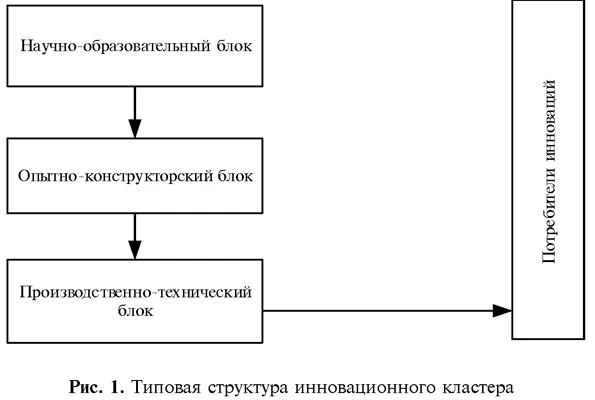 Бабкин А.В. Пшеничников И.В. Кластерная концепция тесно связана с работами Майкла Портера: об индустриальных кластерах и, затем, о региональных кластерах, где он подробно описывает тесные взаимосвязи между кластерным партнерством и конкурентоспособностью фирм и отраслей промышленности. Портер определяет кластер как «сконцентрированные по географическому признаку группы взаимосвязанных компаний, специализированных поставщиков, поставщиков услуг, фирм в соответствующих отраслях, а также связанных с их деятельностью в определенных областях, конкурирующих, но вместе с тем и ведущих совместную работу» [10, с. 9]. Методологической основой развития теории кластеров явилась целая группа теорий. Данные теоретические разработки можно разделить на две группы. Во-первых, фирмы в кластере должны быть связаны некоторым способом. Связи являются и вертикальными (цепи покупок и продаж), и горизонтальными (дополнительные изделия и услуги, использование подобных специализированных затрат, технологий или институтов, и другие связи). Кроме того, большинство этих связей вовлекают социальные отношения или сети, которые производят выгоды для задействованных фирм. Вторая фундаментальная характеристика: кластеры — географически близкие группы взаимосвязанных компаний. Совместное местоположение компаний способствует формированию и увеличению преимуществ, создающих стоимость, являющихся результатом структуры взаимодействий между фирмами [4, с. 66]. Под промышленным кластером обычно понимается совокупность фирм (организаций), объединенных едиными материальными, финансовыми и информационными потоками, непосредственно не связанных между собой отношениями собственности, иными словами это комплексы-структуры, в которых готовая продукция или отходы одного производства являются полуфабрикатом или сырьем для другого [2, с. 53]. Для инновационных кластеров особенно важным и чувствительным становятся: наличие четко выстроенной структуры взаимодействия между участниками кластера, эффективная система воспроизводства всех необходимых ресурсов для жизнедеятельности кластера, заинтересованность всех участников в создании инновационного продукта. Инновационный кластер может включать в себя производственную составляющую, а может заниматься только созданием инновационной идеей и опытным образцом инновационной продукции, а производством инновационной продукции будет заниматься непосредственно промышленный кластер, расположенный в этом же регионе или в географически удобном доступе. С учетом отличительных особенностей для инновационного и промышленного кластера предлагается следующая трактовка инновационно-промышленного кластера сочетающего в себе функции инновационного и промышленного кластера одновременно: под инновационно-промышленным кластером понимается, обособленная отраслевым характером группа инновационных образований, хозяйствующих субъектов, государственных административных и научно-образовательных учреждений, сочетающих формальную самостоятельность и внутреннюю конкуренцию с кооперацией, наличием единого центра управления, цель функционирования которой заключается в воспроизводстве высокотехнологичных продуктов и промышленных производств и достижении общего регионального синергетического эффекта. 