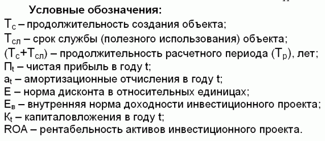 оценки эффективности инвестиционных проектов