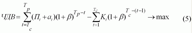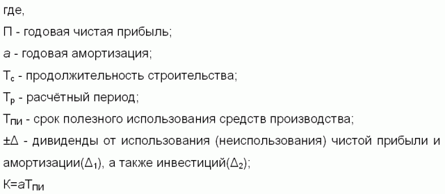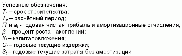 Для придания зависимости (3) чувствительности к инвестиционным затратам и приведения её в более ясный и удобный вид для инвестиционных расчетов соответствующими преобразованиями получаем:
