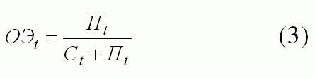 Однако и в среде сторонников ресурсно-затратной модели формирования знаменателя (полных затрат) ОЭ не было единства. Все сходились на том, что на уровне предприятия полные затраты выражаются годовой стоимостью произведенной продукции и ОЭ имеет вид: