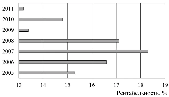 Одной из причин наступления рецессии в экономике России, симптомы которой уже отчетливо видны, следует считать недостаточно широкое восприятие отечественными предприятиями мировых инвариантных стандартов логистического взаимодействия. Подобное запаздывание в условиях, когда конкуренция на отечественном внутреннем рынке приобретает международное измерение (вследствие вступления страны в ВТО), создает существенную угрозу, прежде всего, развитию реального сектора национальной экономики. Его представители сегодня демонстрируют далеко не лучшие показатели. Около 30 % предприятий обрабатывающей промышленности являются убыточными. Рентабельность проданных ими товаров так и не достигла докризисного периода (см. рисунок). Предприятия не оставляют открытым вопрос об улучшении своей хозяйственной деятельности. Ими внедряются различные организационные инновации, среди которых выделяются внедрение современных систем логистики и реализация новых форм хозяйственных связей. Однако такую логистическую активность, согласно открытым данным официальной статистики, проявляет менее трети от всех предприятий и только лишь четверть из них стремится перестроить хозяйственные связи. Хотя «тщательное» управление такими связями служит действенным инструментом достижения конкурентного преимуществ, так как на рынке сегодня соперничают цепи поставок, ориентированные на обслуживание конечных потребителей. Выполнение последнего условия во многом связано с реализацией политики ориентации на клиента. Это и обусловливает актуальность стратегии проектирования клиентоориентированных цепей поставок.Рентабельность проданных товаров, произведенных предприятиями обрабатывающей промышленности
