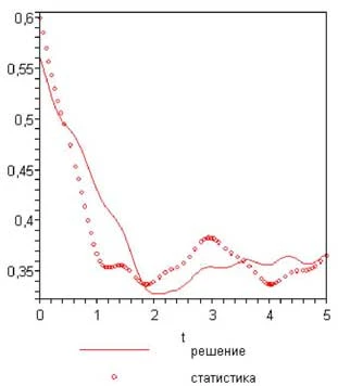 где K - величина капитала и, соответственно, K - прирост капитала, M - величина денежного агрегата и, соответственно, M - прирост массы денег. Коэффициент m определяет лаг (запаздывание) в процессе формирования капитала или денежного агрегата. Коэффициент r - спад (затухание) темпа прироста. Коэффициент В первом приближении определить постоянные коэффициенты можно методом экспертных оценок, исходя из сравнительного анализа динамики известных статистических рядов темпов прироста. Путем выбора коэффициентов, решение уравнения для темпа прироста капитала при заданном воздействии функции денежного агрегата, можно приблизь к известному ряду темпа прироста капитала. Результат решения обратной задачи, решение уравнения для темпа прироста денежного агрегата под влиянием роста капитала: