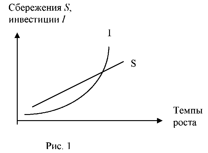 ![]() Нет никаких оснований, чтобы полагать, что желаемые сбережения будут именно такими, какие необходимы для обеспечения оптимального темпа роста, соответствующего полной занятости труда и других факторов производства. Для достижения оптимального темпа роста правительство должно регулировать уровень сбережений. Рыночные силы не регулируют цены факторов производства таким образом, чтобы обеспечить их полную занятость. Регулирование уровня сбережений означает отказ от капитализма laissez faire. Далее, как уже говорилось, Харрод вводит понятие естественного (или оптимального) темпа роста (natural rate of growth, Gn). Это такой темп роста, который способен полностью абсорбировать возрастающее предложение труда и доступный прогресс технологии. Уравнение оптимального (естественного) темпа роста имеет следующий вид: (3)В формуле (3) заданной величиной является оптимальный темп роста, а определяемой величиной - уровень сбережений, который необходимо поддерживать для обеспечения оптимального роста. Поэтому Харрод повторно записывает уравнение оптимального роста в такой форме: Формула оптимального роста описывает ситуацию в условиях регулируемого капитализма, когда государство активно влияет на формирование сбережений и непосредственно участвует в инвестициях. Достижение оптимального темпа роста требует вмешательства правительства, проведения активной денежной и финансовой политики. «Монетарная и финансовая политика, - пишет Харрод, - служат для корректировки нормы сбережения, с тем, чтобы сбережения были не больше и не меньше, чем нужно, чтобы обеспечить разумный уровень полной занятости и рост в соответствии с потенциальными возможностями роста данной экономики». Естественный темп роста G n соответствует социальному оптимуму. Поэтому сбережения S0, необходимые для естественного темпа роста, также соответствуют социальному оптимуму. Наконец, Харрод рассматривает реальный темп роста, детерминированный осуществленными сбережениями и инвестициями, который, как правило, отклоняется от обеспеченного и оптимального темпа роста. Итак, в грубом приближении, можно сказать, что при заданном коэффициенте капитала C обеспеченный рост определяется желаемыми сбережениями, реальный рост -осуществленными инвестициями, а естественный или оптимальный рост - ростом населения, техническим прогрессом, достижимым уровнем общественного благосостояния. Харрод рассматривает различные ситуации, когда совокупные сбережения в обществе на длительном отрезке времени достаточны или недостаточны для поддержания оптимального роста. Применительно к современной российской экономике вряд ли можно говорить о недостаточности сбережений. Скорее речь должна идти о неоправданно низком уровне конечного потребления и неравномерном распределении дохода. Конфликты целейСогласно Харроду, если общество способно осуществить достаточное количество сбережений, но, тем не менее, темпы реального роста ниже темпов оптимального и обеспеченного роста, активная денежная и финансовая политика приближает экономику к траектории оптимального роста. При этом, в случае избытка сбережений относительно реального роста активная политика, сама по себе, не вызывает инфляции. Напротив, в случае временной нехватки сбережений относительно реального роста активная политика, с