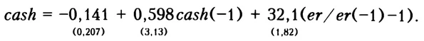 Изменение активов в форме наличной иностранной валютыСпрос на наличную валюту cash изменяется в зависимости от динамики номинального курса доллара (переменная er).