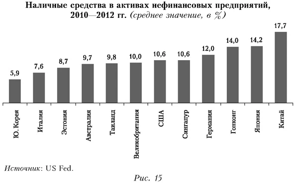 Источник: IMF, 2015e. С учетом вероятности кризисного развития событий в России следует создать механизмы, минимизирующие воздействие внешних шоков. Особую актуальность приобретут меры по обеспечению валютно-финансовой стабильности, уменьшению зависимости от международного финансирования и увеличению значения внутренних источников финансовых ресурсов. При этом необходимо активизировать деятельность национальных монетарных властей по формированию «длинной» ресурсной базы как основы долгосрочного развития. В целом можно использовать широкий круг мер, которые обеспечат России запас геоэкономической и геополитической прочности, необходимый для повышения ее системообразующей роли в новых условиях возможной глобальной нестабильности. 1 https://data.oecd.org/conversion/purchasing-power-parities-ppp.htm#indicator-chart. 2 РБК Daily. 2015. 27 марта. http://www.rbcdaily.ru/economy/562949994514809. 3 Выступление Председателя Банка России Э. С. Набиуллиной в Государственной Думе РФ 16.06.2015 г. 4 Washington Times. 2015. April 30. 5 http:// www.peakprosperity.com /. 6 РИА Новости. 2015. 16 апр. 7 http://www.moneynews.com. Список литературыБанк России (2015). Основные направления единой денежно-кредитной политики на 2016 год и период 2017 и 2018 годов. Москва. Проект от 11 сент. [Bank of Russia (2015). Guidelines for the single state monetary policy in 2016 and for 2017 and 2018. Draft as of September 11. Moscow. (In Russian).] Всемирный банк (2005). Доклад об экономике России, № 11. [World Bank (2005). Russia economic report, No. 11.] Всемирный банк (2007). Доклад об экономике России, № 14. [World Bank (2007). Russia economic report, No. 14.] Всемирный банк (2010). Доклад об экономике России, № 23. [World Bank (2010). Russia economic report, No. 23.] Ершов М. В. (2000). Валютно-финансовые механизмы в современном мире (кризисный опыт конца 90-х). М.: Экономика. [Ershov M. V. (2000). Monetary and financial mechanisms in the modern world (The experience of the crisis of the late 90's). Moscow: Ekonomika. (In Russian).] IMF (2014). Russian Federation — Concluding statement for the 2014 Article IV consultation mission. April 30. IMF (2015a). Global financial stability report. April. Wash. IMF (2015b). Article IV consultation with the United States of America concluding statement of the IMF mission. May 28. Washington, DC. IMF (2015c). Global financial stability report. October. Washington, DC. IMF (2015d). World economic outlook. Uneven growth: Short- and long-term factors. April. Washington, DC. IMF (2015e). World economic outlook. Adjusting to lower commodity prices. October. Washington, DC. Sher G. (2014). Cashing in the growth: Corporate cash holdings as an opportunity for investment in Japan. IMF Working Paper, No. WP/14/221.
